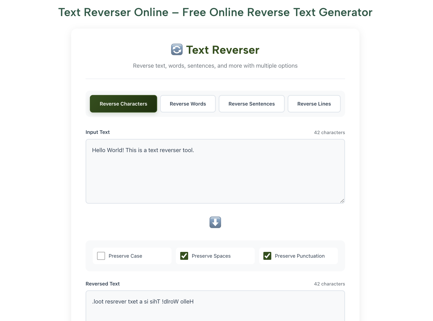 Text Reverser Reverses text Easy Creative projects TextReverse.com