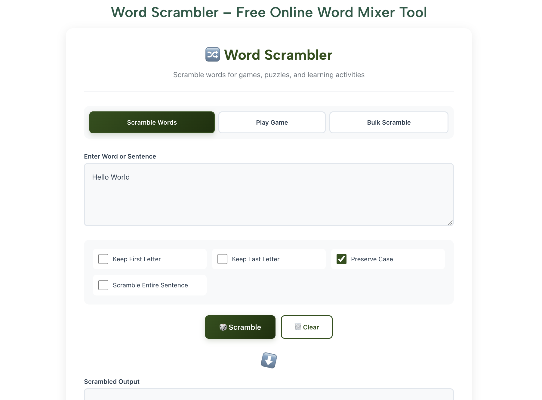 Word Scrambler Scrambles words Easy Games, brainstorming WordScrambler.com
