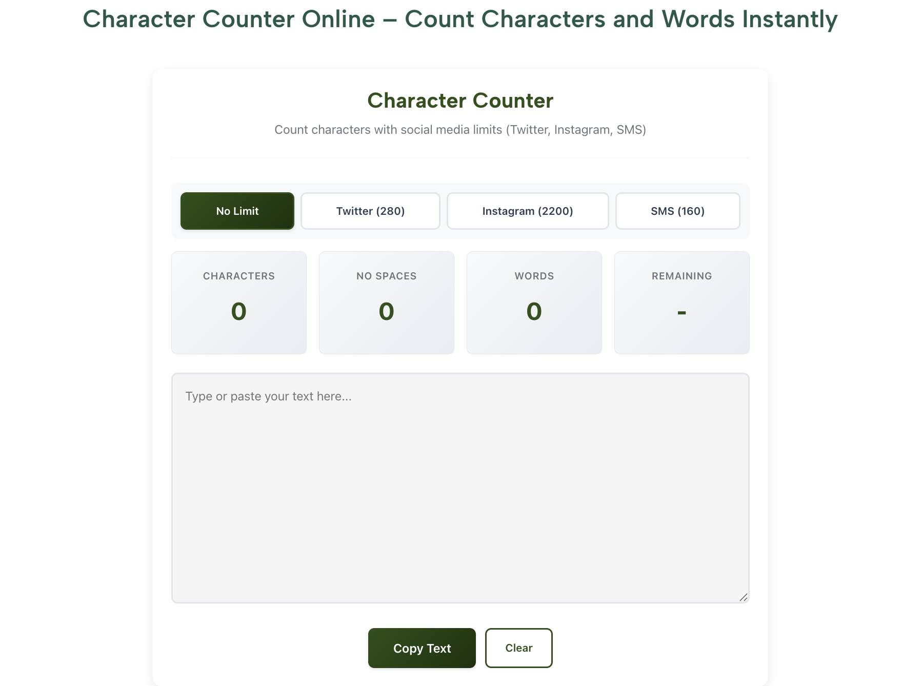 Example: Crafting a meta description? Ensure it’s under 160 characters for SEO with this tool.